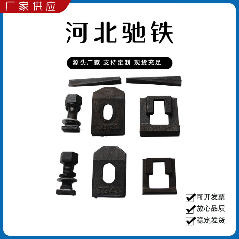 主要產(chǎn)品:鐵路配件、行車配件、工礦配件、魚尾板、道釘、壓軌器、軌道壓板、軌距拉桿、護軌扣板、T型螺栓、魚尾螺栓、彈條、軌距擋板